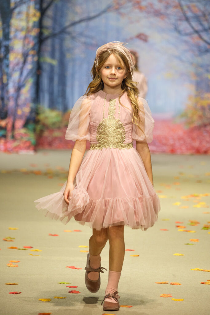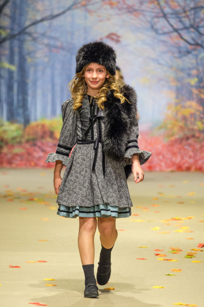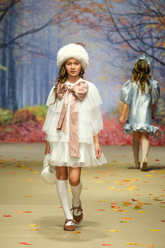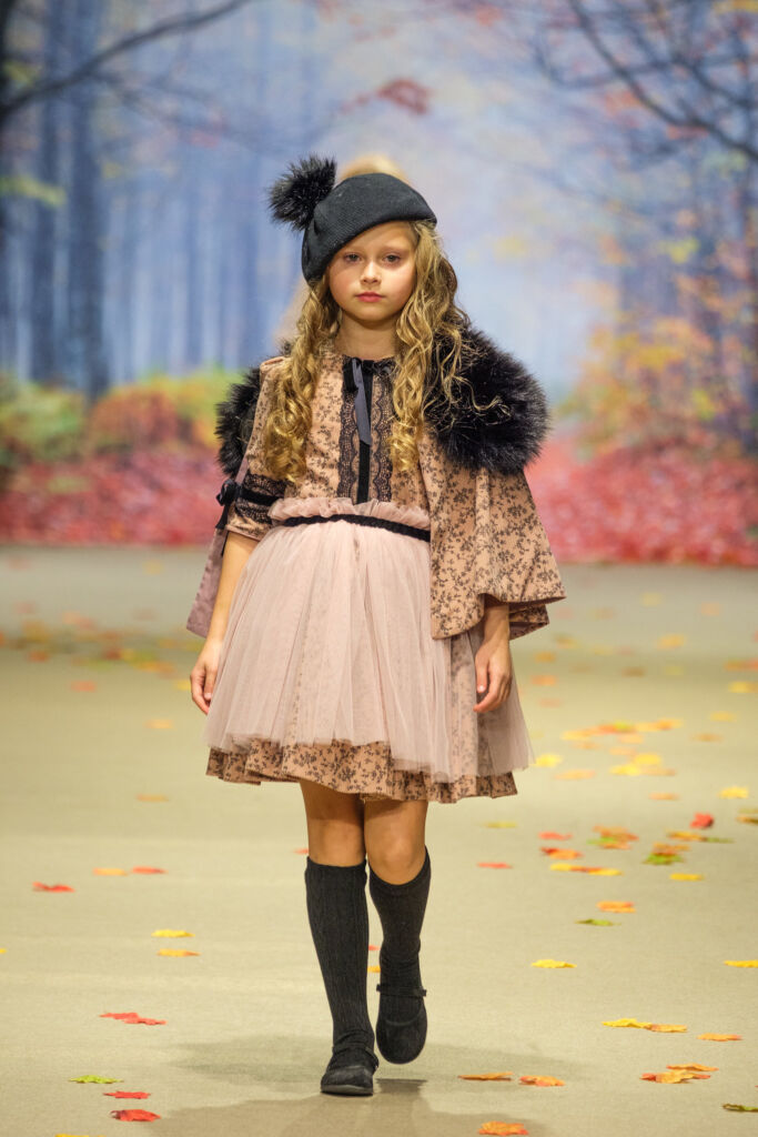 Por su parte, Amarca Kids presentó su colección Ecos de Palacio, una propuesta de moda infantil de invierno que reinterpretó la elegancia palaciega y los rituales clásicos desde una mirada delicada, poética y profundamente infantil, donde la artesanía, los tejidos etéreos y los tonos empolvados construyeron un universo de ensueño pensado para niñas que juegan, sueñan y viven la elegancia con naturalidad.