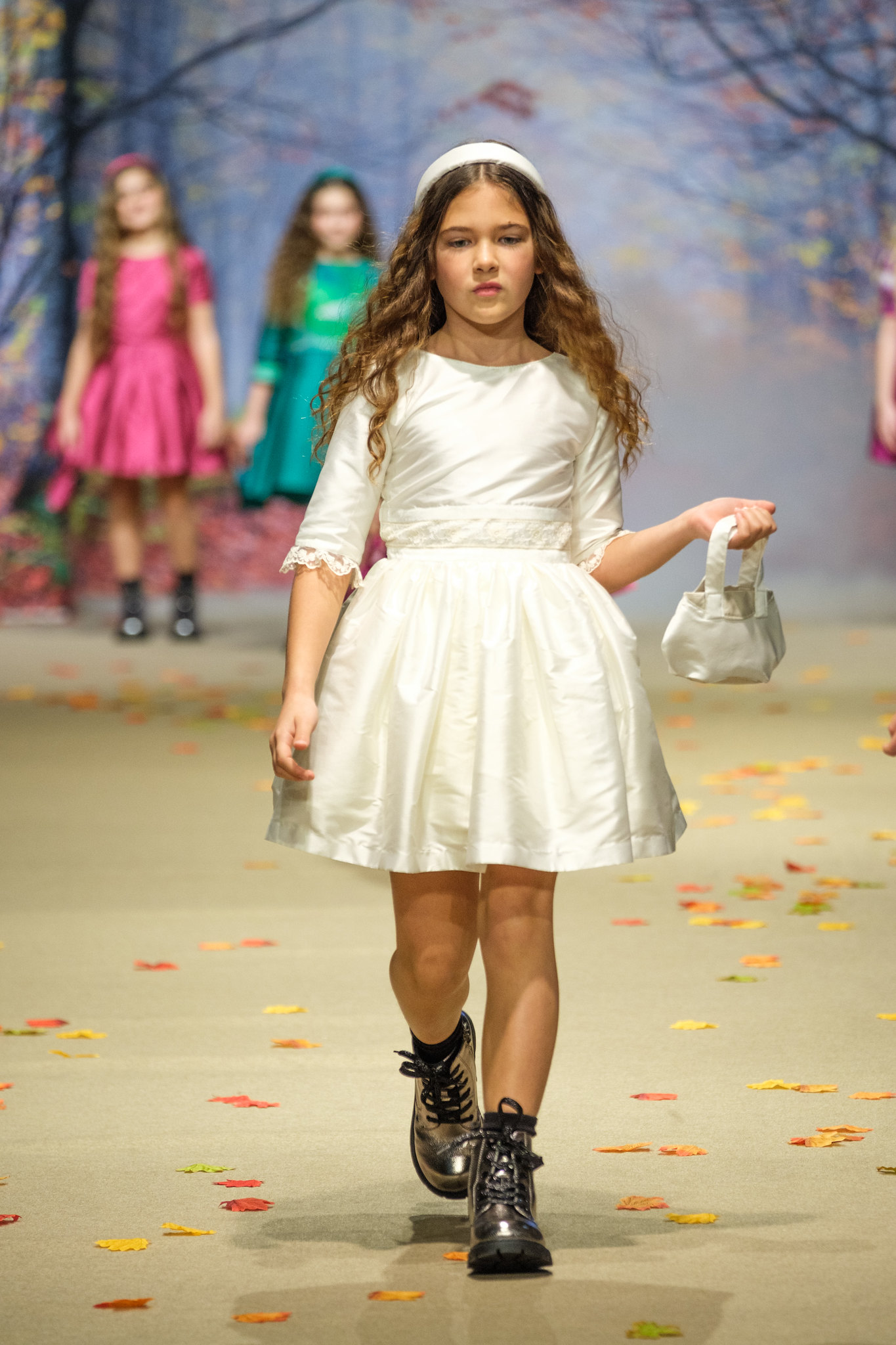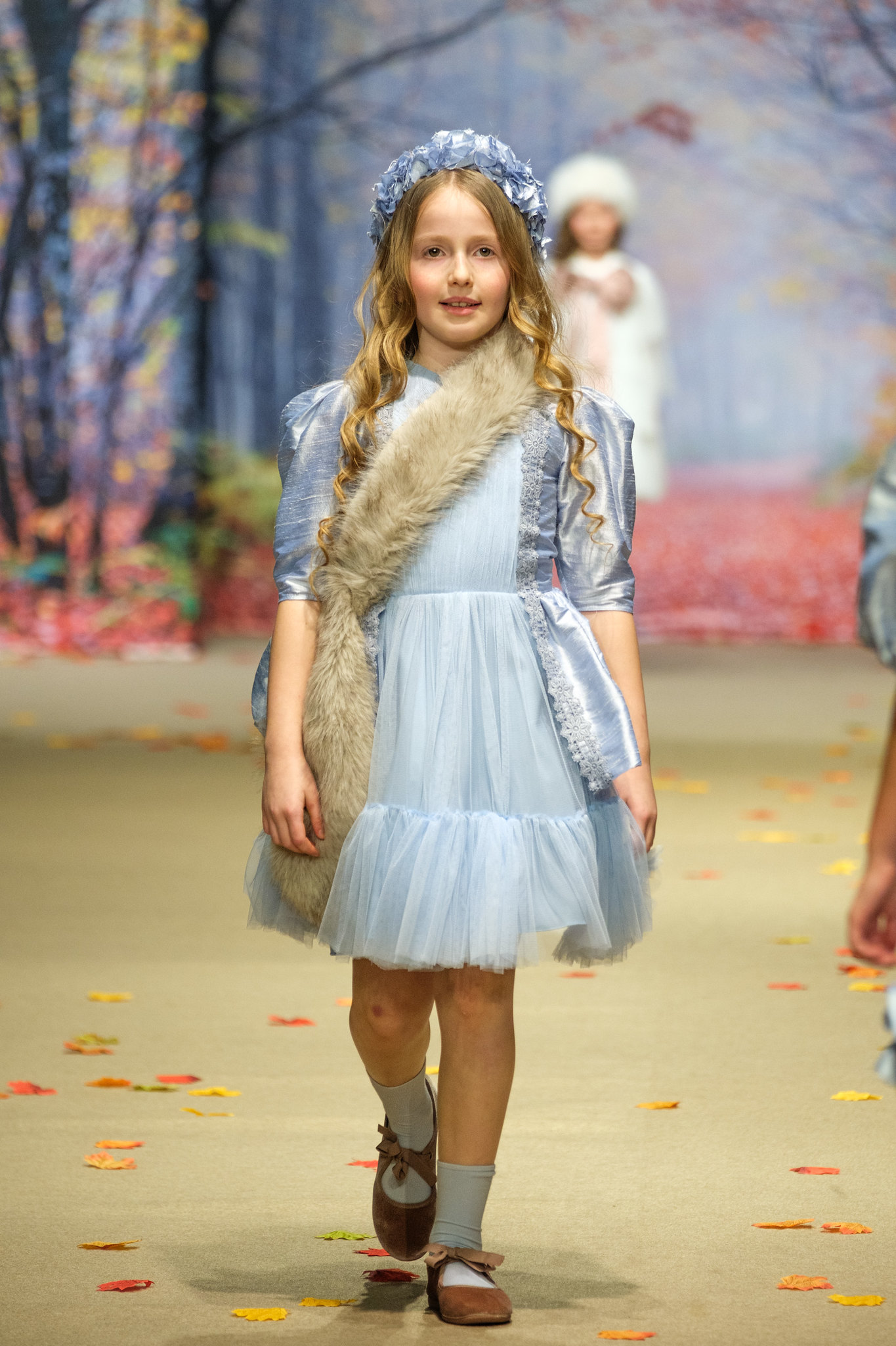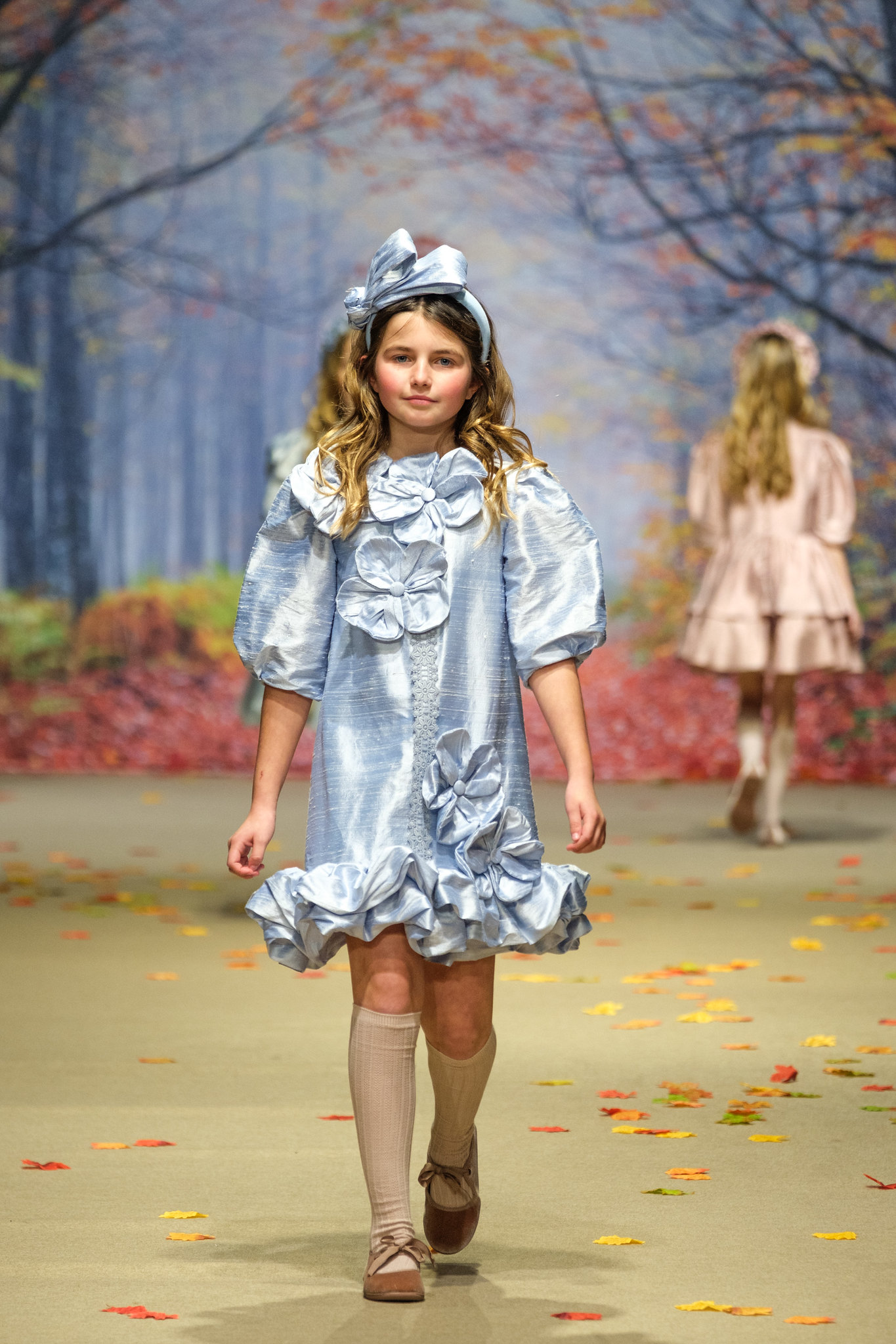 La colección Ecos de Palacio de Amarca Kids evocó un invierno contado a través de la mirada de niñas que sueñan. Vestidos ligeros como pétalos al viento recorrieron jardines invernales y salones iluminados por la noche, entre tules, sedas y bordados delicados. Los colores hablaron en voz baja: rosas empolvados, azules hielo, grises mármol y blancos etéreos que envolvieron cada diseño. Cada prenda reflejó elegancia serena, romanticismo y artesanía, convirtiéndose en un homenaje a la infancia que juega de día y baila de noche entre ecos de palacio.