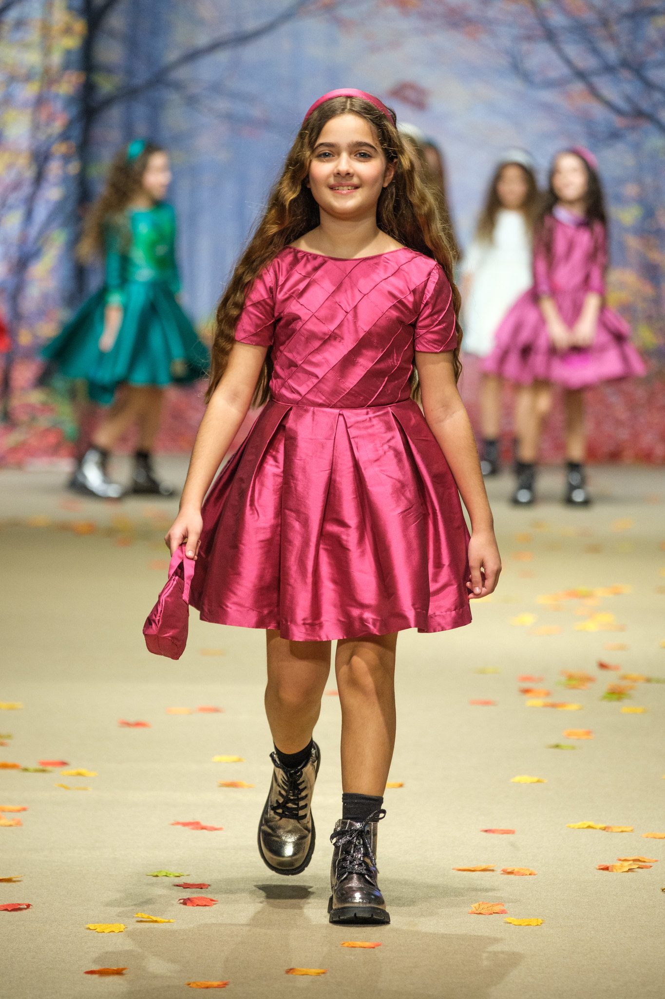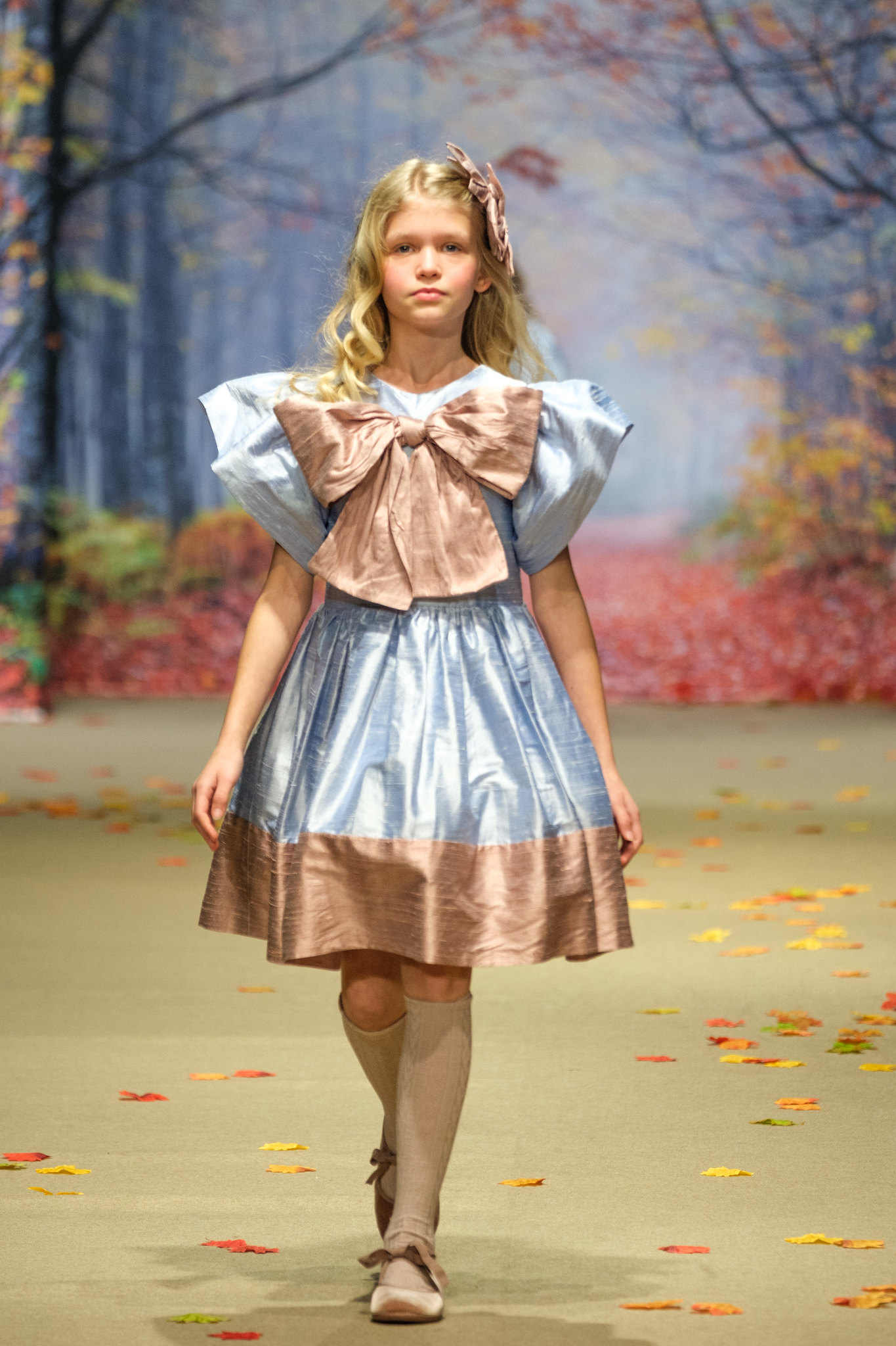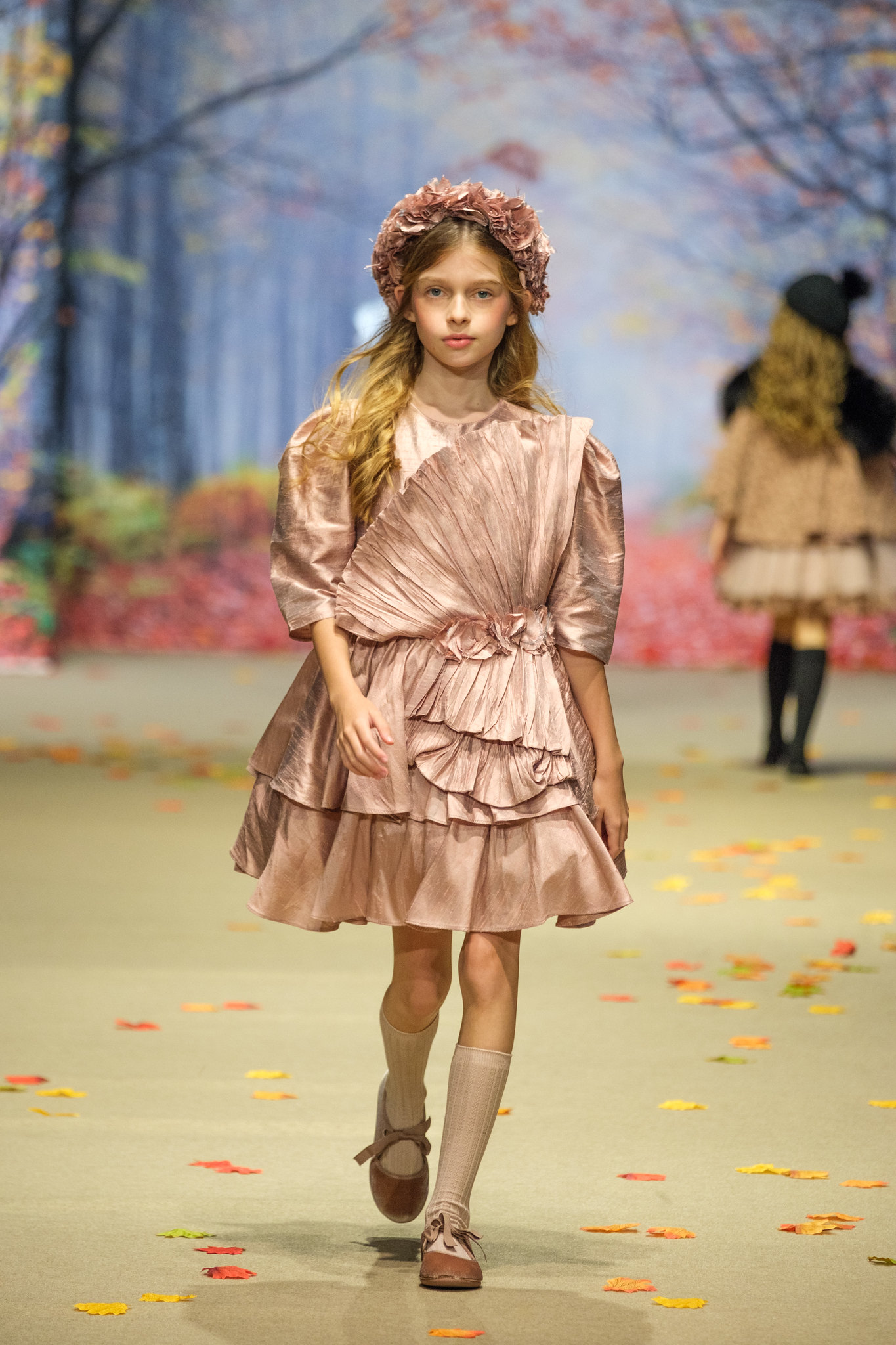 La colección Ecos de Palacio de Amarca Kids evocó un invierno contado a través de la mirada de niñas que sueñan. Vestidos ligeros como pétalos al viento recorrieron jardines invernales y salones iluminados por la noche, entre tules, sedas y bordados delicados. Los colores hablaron en voz baja: rosas empolvados, azules hielo, grises mármol y blancos etéreos que envolvieron cada diseño. Cada prenda reflejó elegancia serena, romanticismo y artesanía, convirtiéndose en un homenaje a la infancia que juega de día y baila de noche entre ecos de palacio.
