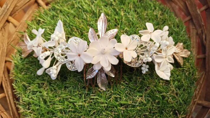 Un tocado es un complemento en el que puedes dar rienda suelta a la creatividad y por qué no a la improvisación, no hay que recargar para que quede bonito y armonioso, menos es más, trabajan con encargos a medida. Usa todo tipo de materiales desde sinamay, cintas, botones, gasas, rasos, plumas, etc. Las flores también están realizadas a mano materiales como seda natural y organza.